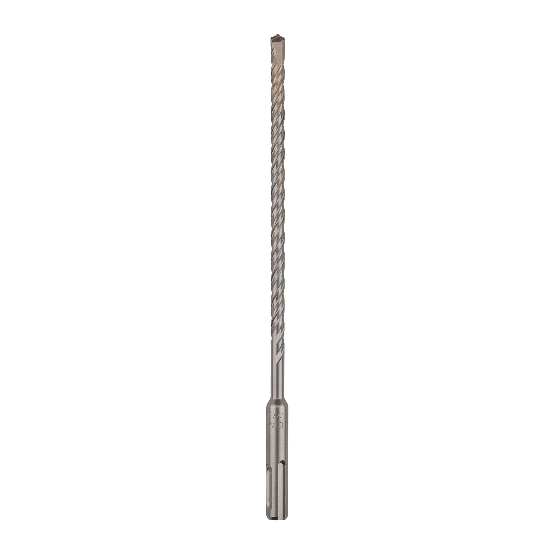 SDS Plus 2 Cutter Drill Bits have a strong tapered core to help resist flute breaks, especially when drilling deep holes. For optimal drilling speeds, the two-stage flute design features a variable helix pattern that quickly moves debris away from the contact zone. Plus, the two sharp, carbide-cutting edges deliver clean, round holes for secure anchor installation.
