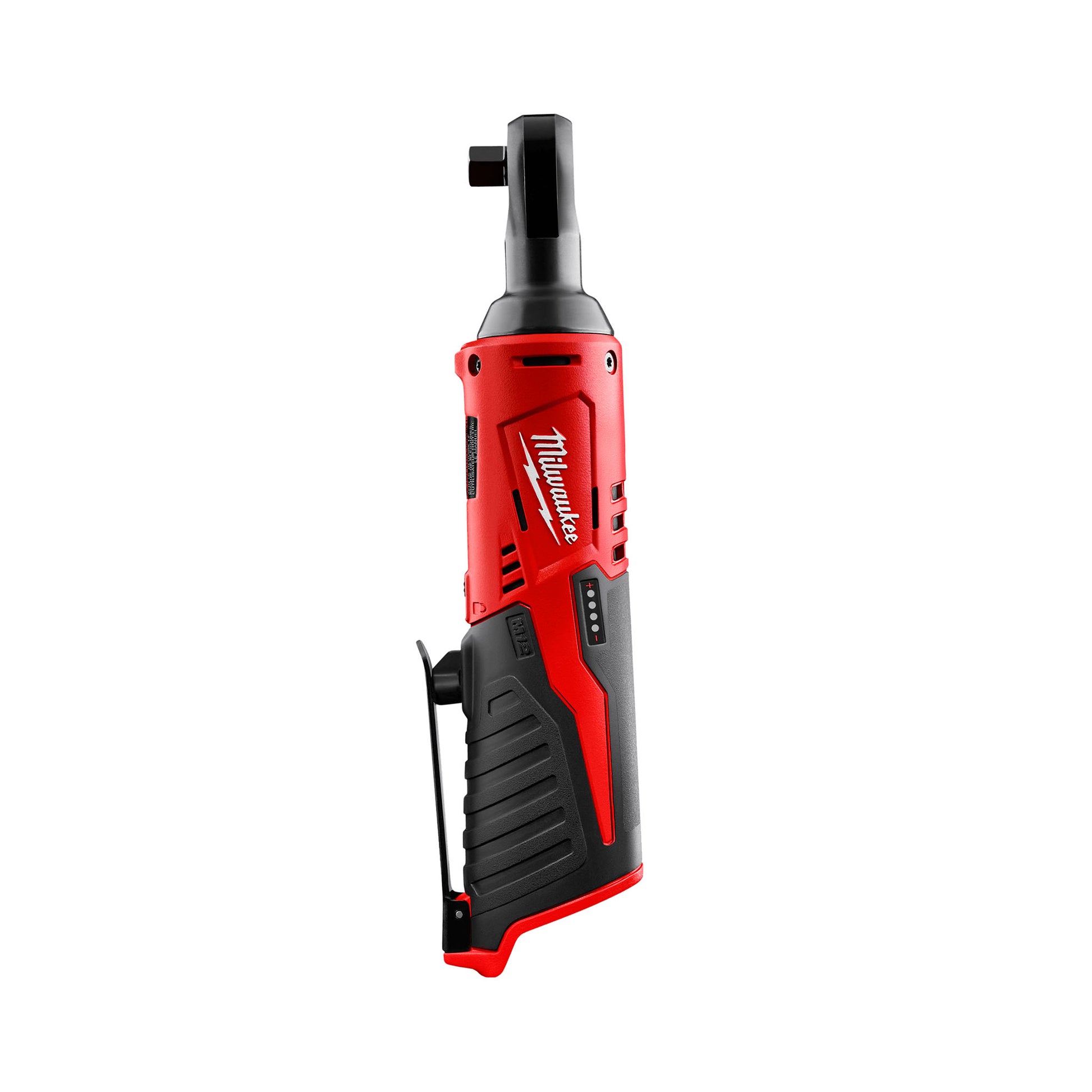Choose the sub-compact ratchet with best-in-class power, speed and durability. The M12™ Cordless 3/8” Lithium-Ion Ratchet is the ideal tool for auto mechanics, maintenance and repair professionals looking for maximum performance and productivity in a subcompact cordless tool. It utilizes a powerful 12-volt motor to produce up to 35 ft-lbs of torque and 250 RPM, giving users the power and speed of a pneumatic ratchet without the airhose. It’s powered by the M12 REDLITHIUM™ Battery Pack (sold separately), which delivers more work per charge and more work over pack life than the competitors, as well as best-in-class performance in extreme jobsite conditions. At just 10-3/4” long and 1.9 lbs, the ratchet is tool-belt portable, and features a 3/4" low-profile head design for work in the tightest of spaces and engine bays.
