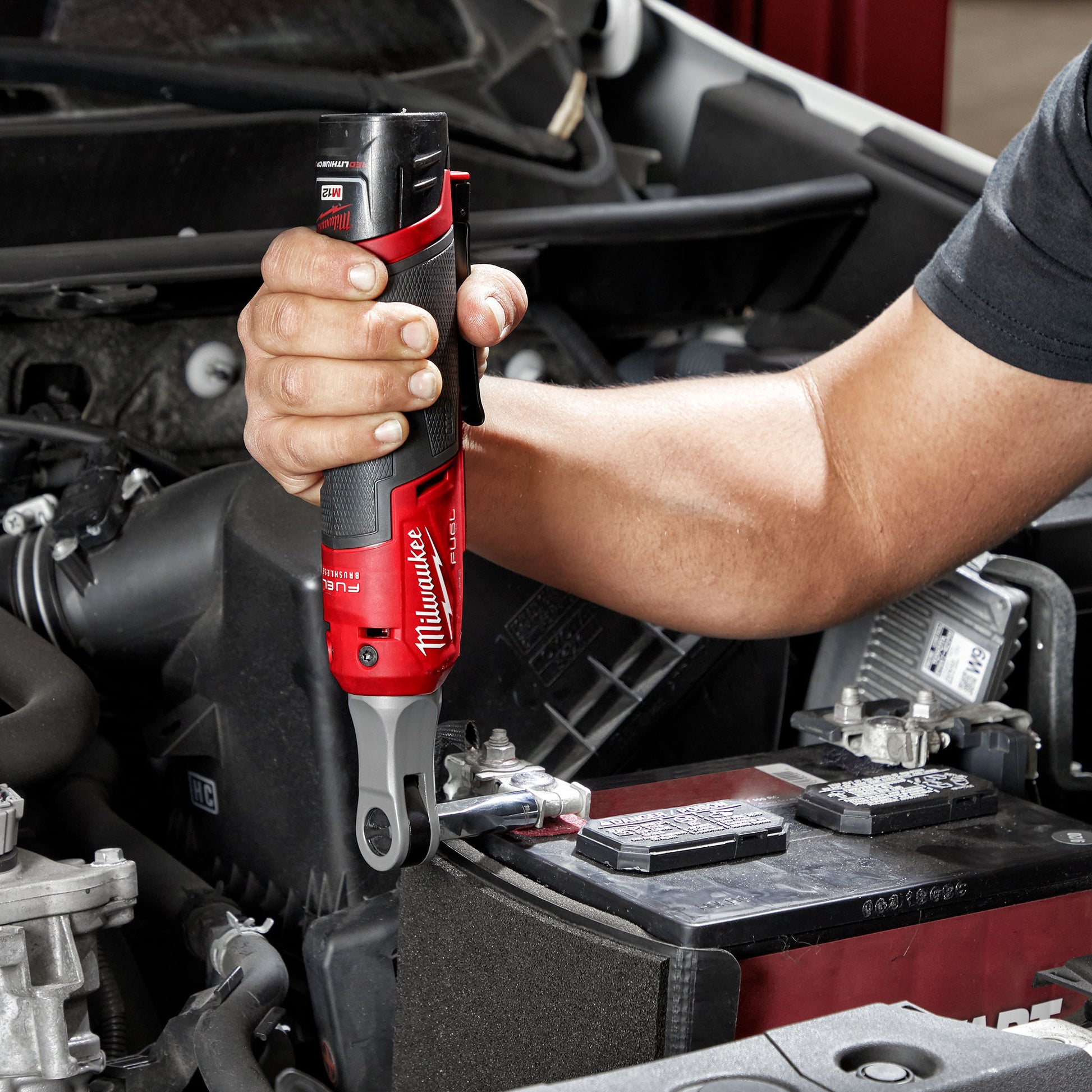 The Milwaukee M12 FUEL™ 1/4" High Speed Ratchet Kit is part of the latest addition to our best-in-class lineup of ratchets. This MILWAUKEE® cordless ratchet kit features the fastest speed while installing and removing fasteners. The most compact head size in its class gives you more access in tight spaces. A steel yoke housing and POWERSTATE™ Brushless Motor deliver the superior durability that you expect from Milwaukee. The M12 FUEL™ High Speed Ratchets are an ideal addition to any technician tool chest, allowing you to be more productive than any other battery-powered ratchet.