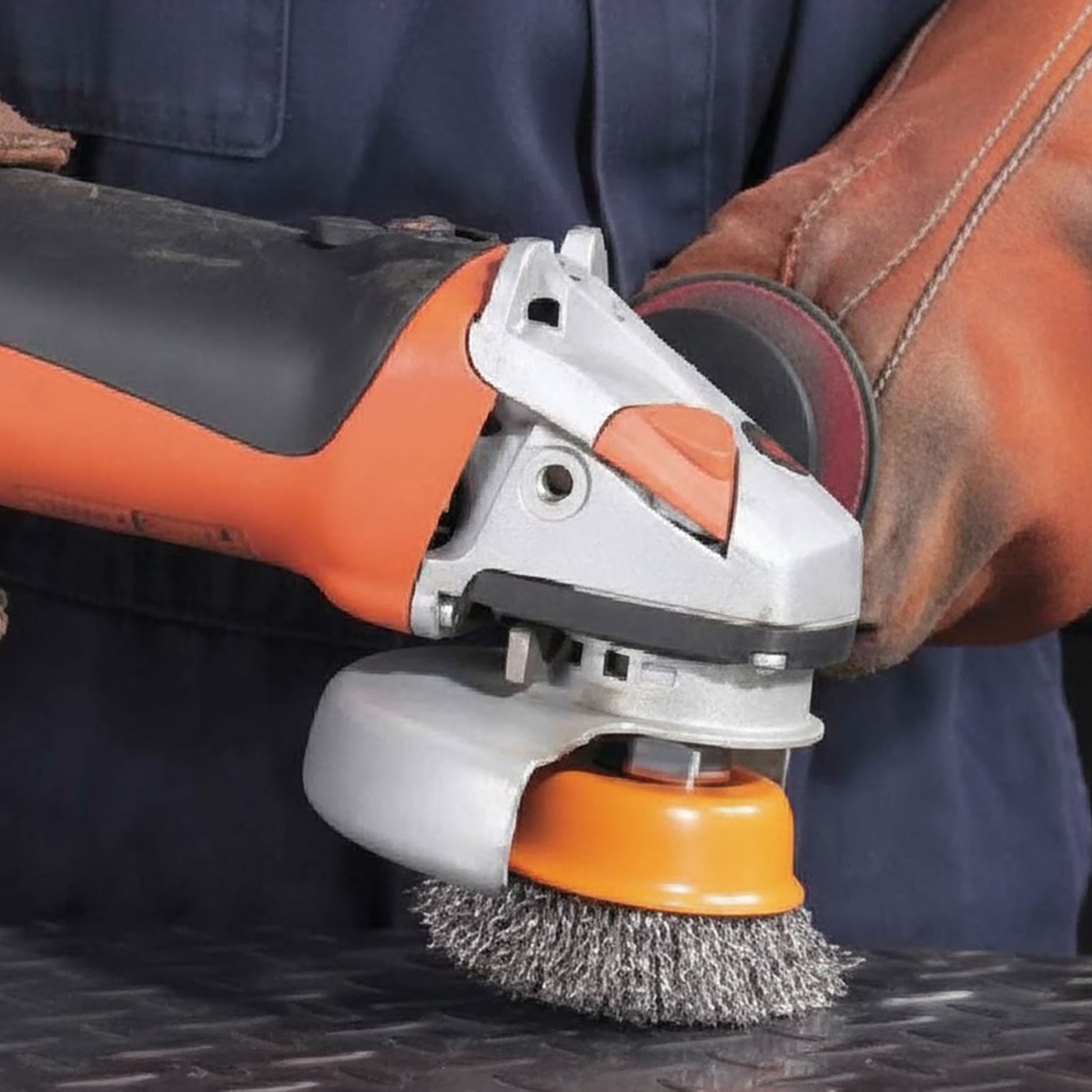 WALTER 13D302 - 3" Carbon Steel Wire Cup Brush for angle grinders is design for high performance brushing of large surfaces. it is made from top quality oil hardened and tempered wire for maximum operator safety and fast brushing action. All cup brushes are equipped with threaded arbors for quick and easy mounting. Made with premium carbon steel wire that is oil hardened and tempered for longest life and maximum brushing action. Excellent for light surface cleaning, rust and paint removal.